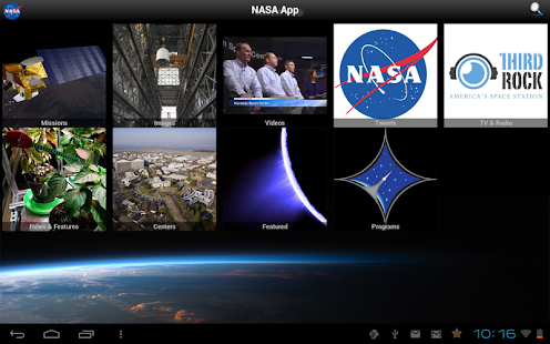 Come explore with NASA and discover the latest images, videos, mission information, news, feature stories, tweets, NASA TV and featured content with the NASA App for Android.